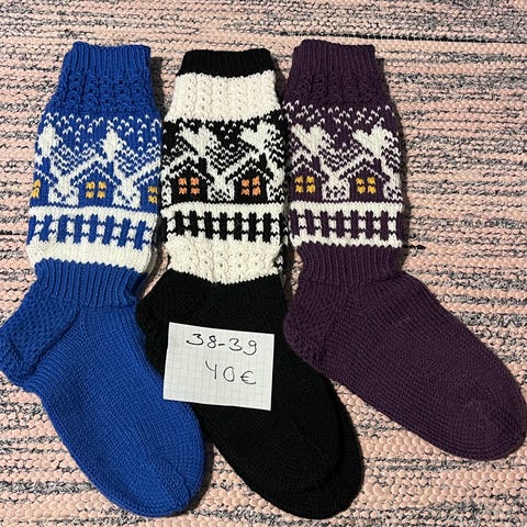 Uusia kudottuja villasukkia 10€/pari eri värisiä ja kokoisia saatavilla☺️