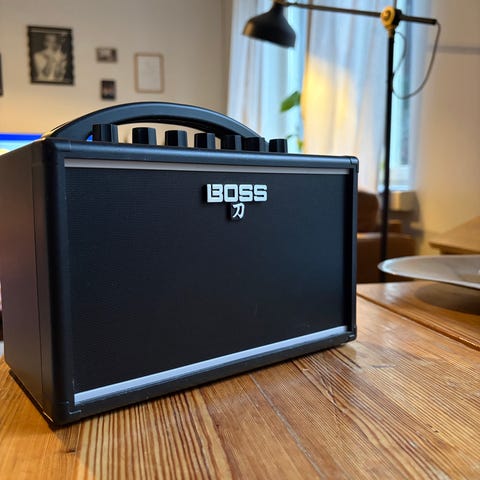 Tästä myyntiin vähän käytetty Boss katana mini vahvistin. Todella kätevä matka/harjoittelu vahvistin. Oikeasti hyvä soundi näinkin pienellä vahvarilla. Ollut käytössä n. 20h ja isomman vahvarin tultua ja ollut käyttämättömänä kaapissa. Toimii paristoilla tai muuntajalla (ei mukana).