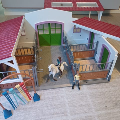 Schleich yksisarvinen ja tulostettu talli.