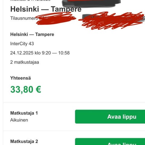 Myydään ylimääräinen junalippu Lappeenranta - Helsinki 26.12. 11:31.