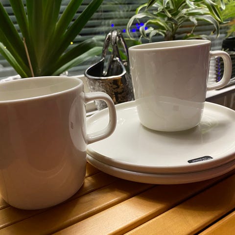 Uudenveroinen Marimekon svaale muki, korkeus 9,5 cm ja halkaisija 8 cm.