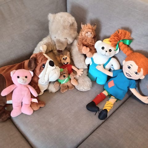 Lapsi myy pehmoja. Hinta 1 - 5 €/ kpl. Nouto Länsi-Patelasta. Myynnissä myös muualla.
