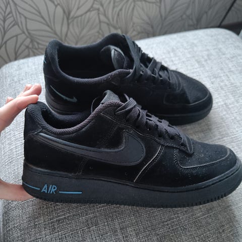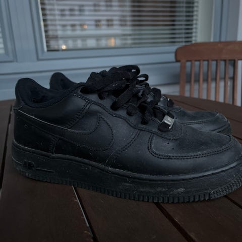 Mustat air forcet. Muuten ihan siisti kunto mutta kantapäät on rikki hieman, näkyy kuvissa.. Ei ole pyyhitty suurimpia likoja, mutta kulumaakin on.