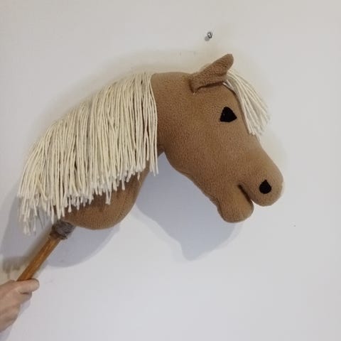 Myynnissä itsetehty käyttämätön valkoinen keppari ruskeilla laikuilla. Poni on tehty fleece kankaasta. Kepparissa on tukikangas ja se on hyvin tukeva. Ponilla tulee keppi mukana ja keppi on keltainen ja muovinen. Kepparin harja on tehty valkoisesta villalangasta. Myös ponin kepitys on tukeva. Ponin koko näkyy 7. kuvassa A4 paperia vasten. Hinta sisältää myös nylon-nauhasta tehdyn mustan riimun.
