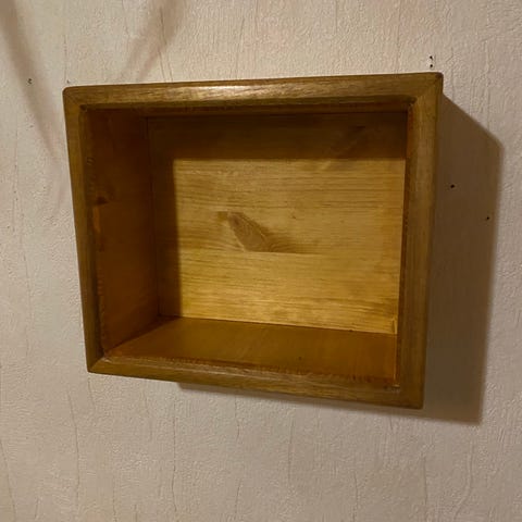 Puusta tehty pieni seinähylly. Käsitelty öljyllä ja vahalla.