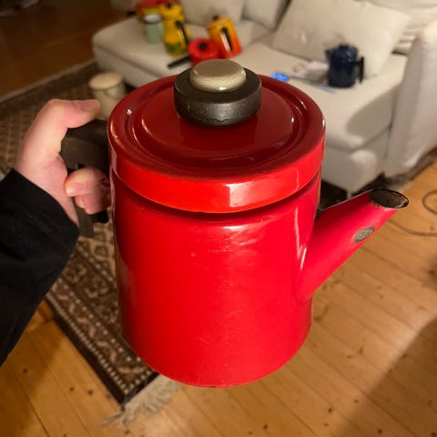 Hakusanat: retro, Valmistaja, sisustus, keittiötarvikkeet, keittiö, kulunut, astia, vintage huonekalut, tarjoilu, lohkeama, kannu, astiat, emalinen, emali, emaloitu, aurinko, keltainen, retro arabia finell, design, design huonekalut, koriste, kannu kaadin kannut pannu pannut keramiikka tarjoilu, vintage, Paketoitava