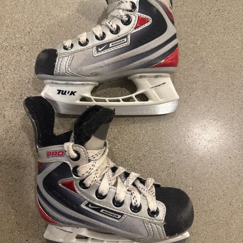 Myydään käytetyt hyvässä kunnossa olevat lasten Bauer merkkiset luistimet koossa 27. Viime talvena teroitetut ja sen jälkeen kerran käytetyt, kuivattu terät huolella. Kuvissa pohjallisesta mitta. Teränsuojat tulee mukana.