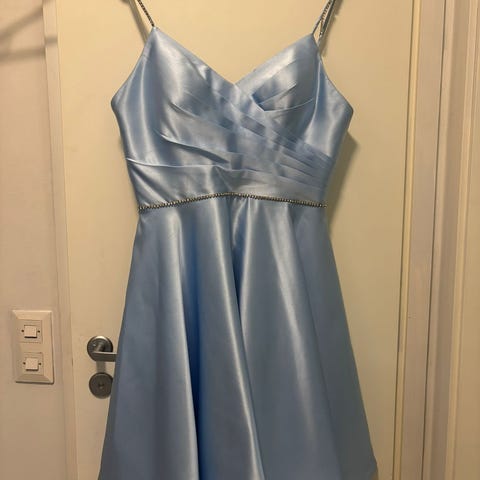 Kaunis tummansininen vanhojenmekko. Ostettu zazabellasta ja käytetty kerran. Mekon kokonumero on 32, mutta mekko on ollut 36/S kokosella. Ovh ~500€.