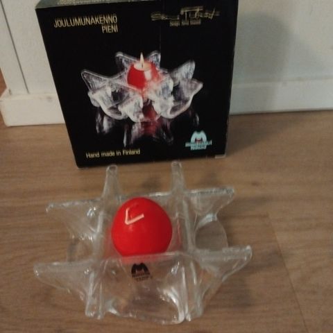 Varhaista tuotantoa oleva Muurlan lasin tekemä kynttiläalusta.