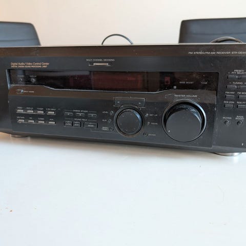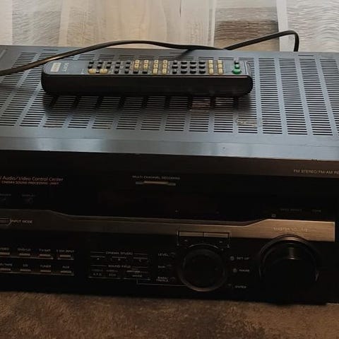 Tämmöinen toimiva kotiteatteri vahvistin löytyisi. Mukaan näytöllinen yleiskaukosäädin.