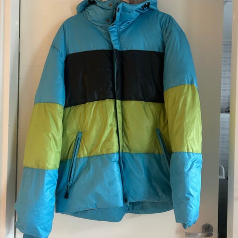 Moitteettomassa kunnossa oleva laskutakki. Lumilukkoa ei ole tallella. Itselle jäänyt pieneksi.