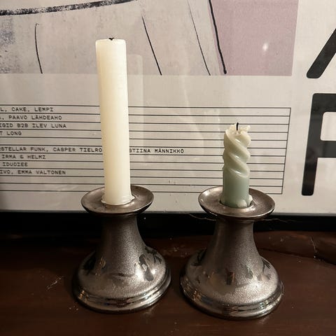 Kaunis kynttilänjalka herkän hennolla värityksellä. Toimii myös figuurina.