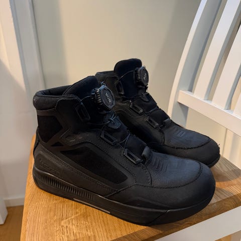 Käytetyt, mutta hyväkuntoiset (likaiset) moottoripyörä kengät seuraavalle. Koko 43 vastaa hyvin todellisuutta.