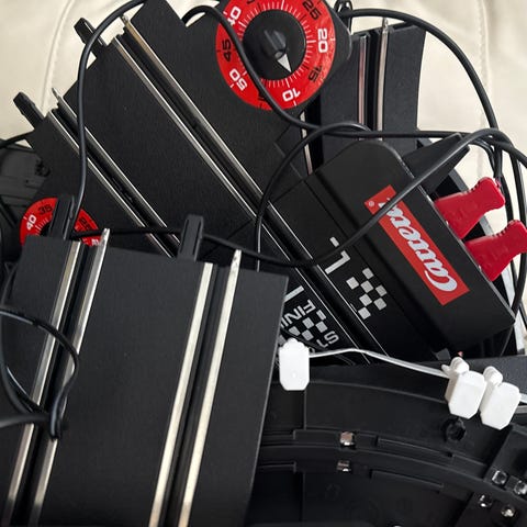 Lisäksi osia toisesta autoradasta yhdellä autolla ja ohjaimella. Osat ehjiä, mutta joukossa muutama viallinen (kuva 6).