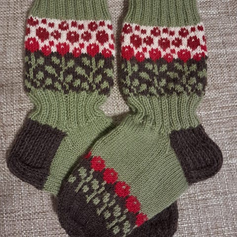 Ne on neulottu Novita 7 veljestä villalangasta. Koossa 36-37, mutta voisin tarvittaessa toki neuloa tilauksesta. Nouto Patoluodosta, Toridiili tai tavallinen postin kuljetus ( postikulut jää ostajalle).