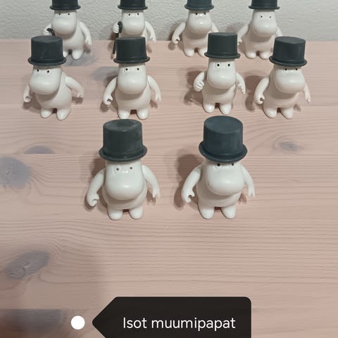 Myydään muumifiguureita. Se perinteinen koko. Mörkö, Hemuli, Muumimamma, Niisku, Niiskuneiti x2, Muumipeikko x1, Muumipappa, Niisku x2 ja Nuuskamuikkunen. 3€/kpl / tarjoa