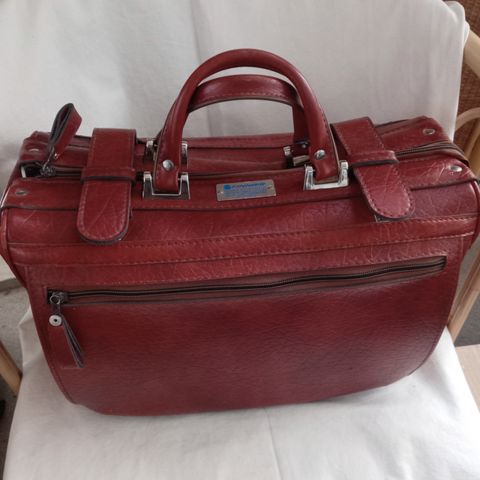 Finnairin nahkainen musta käsimatkatavaralaukku. Mitat noin 40x32x14cm. Laukku on tilava ja sopii erilaisten tavaroiden kuljettamiseen. Metalliosat ovat hopeanväriset. Laukun sisäosa on harmaa kangasvuori.
