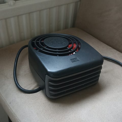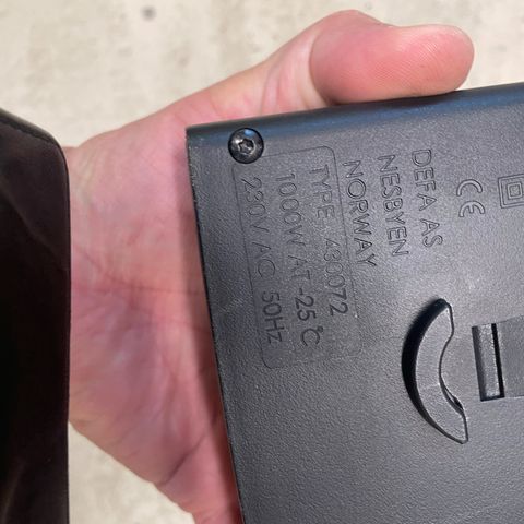 1000W:n DEFAn sisätilalämmitin. Mukana muovinen kiinnitysalusta.