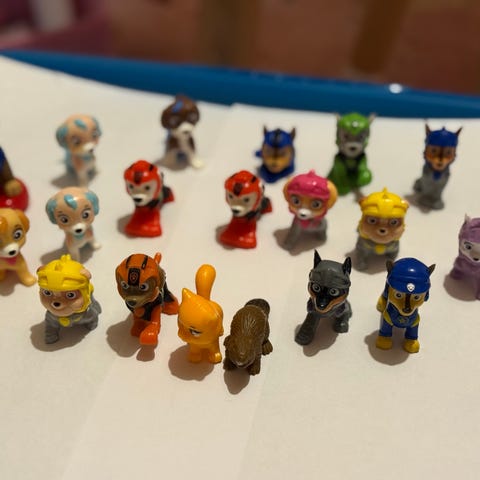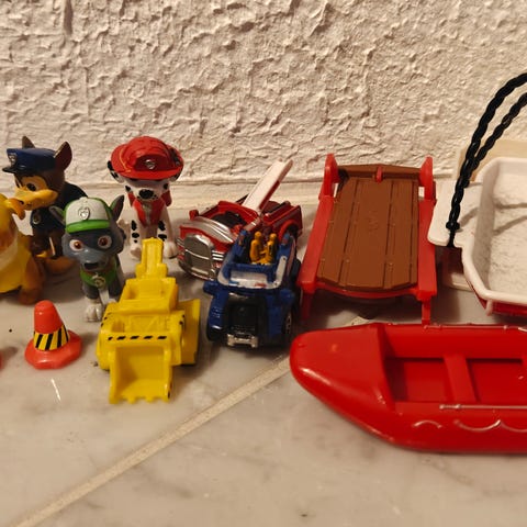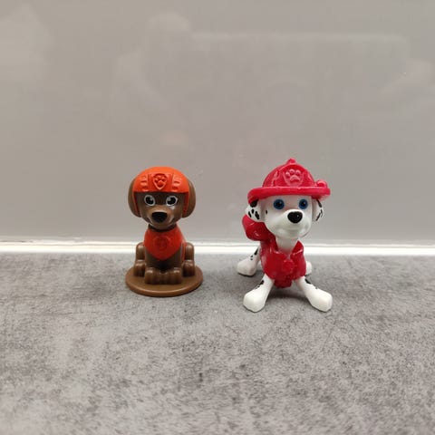 Myydään kuvassa näkyvä setti, koirat ajoneuvoineen.