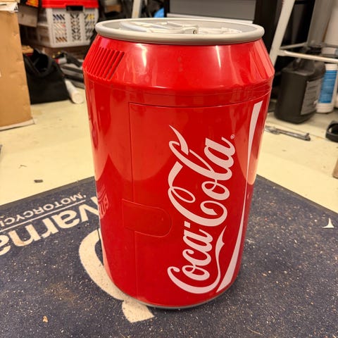 Cocacola minifridge. Toimii matkallakin. Saa kylmäksi sekä kuumaksi. Ac ja Dc vaihtovirrat eri tilanteisiin