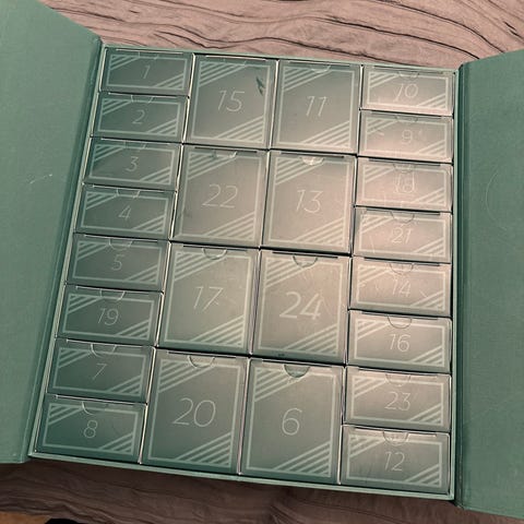 Dermosil TYHJÄ joulukalenteri. Jollekin joka haluaa täyttää kalenterin omilla yllätyksillä. Kehikko ja 25 kolmion muotoista numeroitua laatikkoa.