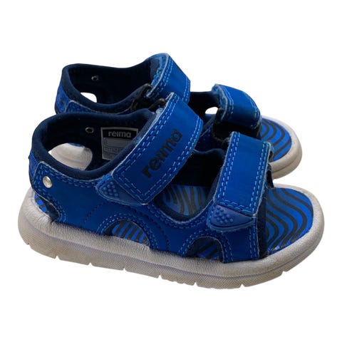 Käytetty Reima verkkokauppatuote. Reima Lomalla -sandaalit, joissa on pehmeä tekstiilipäällinen ja tarranauha pukemisen helpottamiseksi. Kengissä on näkyviä tahroja, jotka todennäköisesti ovat pestävissä. Materiaalit: synteettinen tekstiili Pohjaväri: tummansininen Valmistusvuosi: 2024 Tuotekoodi: 5400086A (Second hand tuotteiden tuotekuvaukset tarjoaa kierrätyskumppanimme Ninyes. Tekstit on käännetty suomenkielelle tekoälyllä.). HUOM! Verkkokauppatuote. Tuote tilattavissa vain Reima verkkokaupasta.