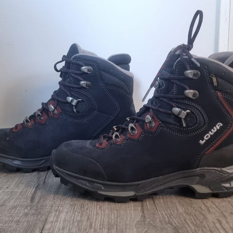 Vähän käytetyt lowan kalvottomat kengät, Hanwagin nahkaiset pohjalliset. Itselleni liian suuret. Koiratalous.