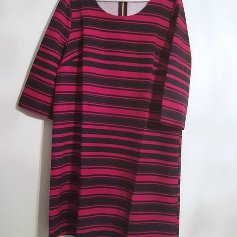 Mitat otettu ilman vyötärön solmimista: O-h 100 cm, k-k 2 x 57 cm - 86 cm, hiha 29 cm.
