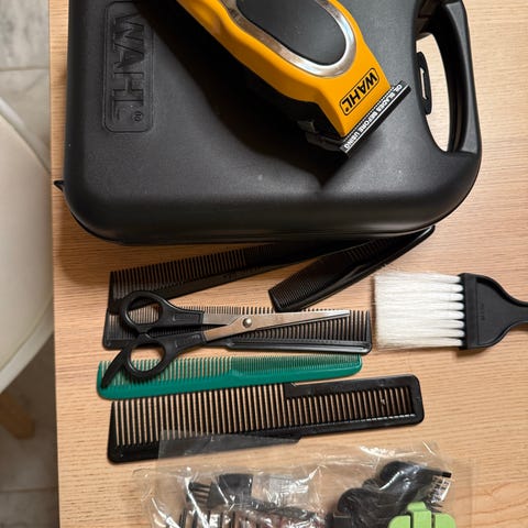 lasten hiustenleikkuusetti muovisalkussa 10e