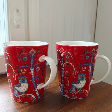 Iittala Taika muki lahjapakkaus sisältää kaksi 0,3 litran sinistä mukia. Mukit on valmistettu kestävästä materiaalista ja niiden koristeena on Taika-kuvio, joka esittää värikästä ja yksityiskohtaista kuvitusta.