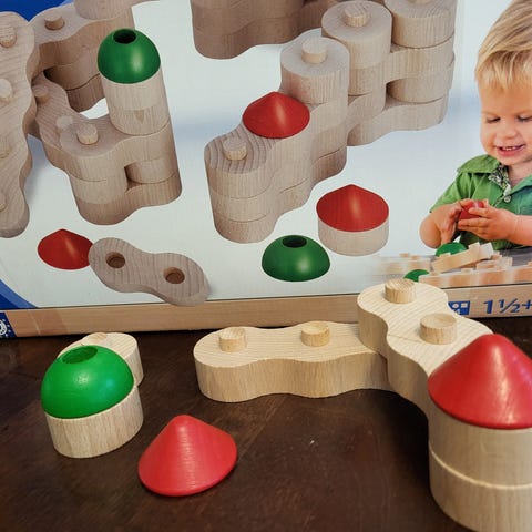 Puiset leikkipalikat lasten lelut. Setti sisältää erilaisia puisia palikoita, jotka soveltuvat lasten leikkeihin ja rakenteluun.