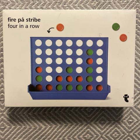 pelilauta ja nappulat, käytetty. Pelilaudassa ruudukko ja mukana on sinisiä ja punaisia pelinappuloita.