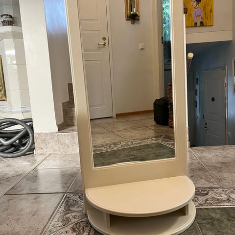 Ovaalin muotoinen peili. Korkeus 70cm, leveys 40cm. Mukana pidikkeet ja kiinnitys.