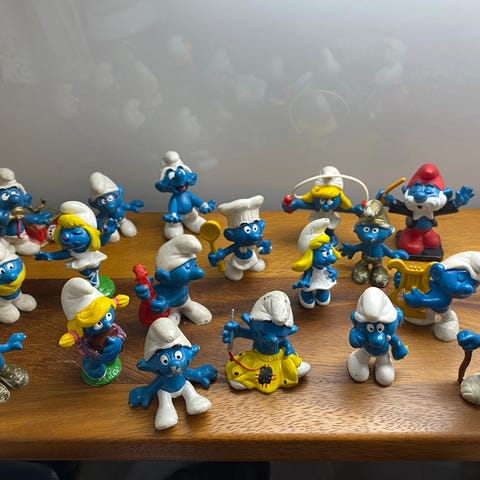 Uudempia litteitä Smurffi hahmoja. Yllätysmunista saatuja.