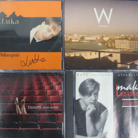Myydään kotimaisten artistien cd-levyjä 5,00 euroa kappale. Kaikki cd:t kuunneltu ja todettu toimiviksi. Cd:ssä voi olla naarmuja & kansipapereissa jälkiä/omistuskirjoituksia, mutta cd-kotelot ovat ehjät. Postituskulut ostajalle ja noutokin sovittavissa.