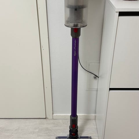 Dyson V7 Animal Pro langaton pölynimuri, väriltään pinkki ja harmaa. Mukana useita imurointisuuttimia ja lisävarusteita. Soveltuu kotitalouskäyttöön, erityisesti eläinten karvojen poistoon.