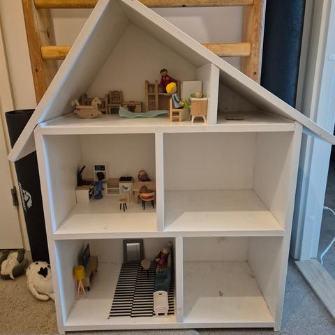 Kuvanmukainen nukkekoti. Kunto hyvä ja kuvissa näkyvät esineet tulevat mukana. Nouto Tikkurilasta.