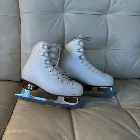 Risport Venus 215 taitoluistimet. Ollut harraste käytössä. Toisen luistimen terässä jäätussista jäänyt tummentumia, vielä ihan hyvässä terässä.