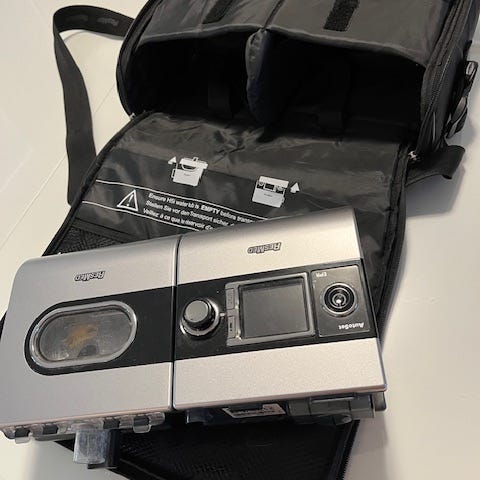 Myydään Resmed AirMini CPAP uniapnealaite, aloituspakkaus ja AirMini laukku.