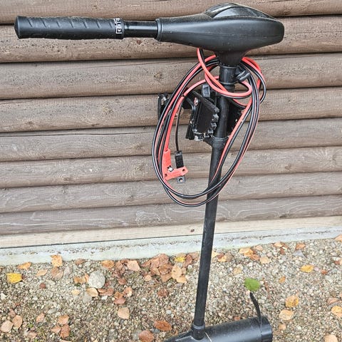 Aikoinaan paljon käytössä ollut, mutta sittemmin vuosia varastossa seisonut sähköperämoottori.