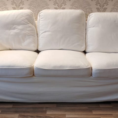 Erittäin hyvässä ja puhtaassa kunnossa oleva Ikean valkoinen Ektorp 3:n istuttava sohva ja rahi.
