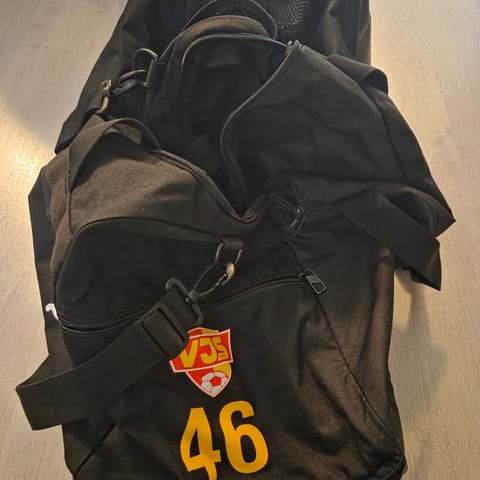 VJS Nike academy team duff m urheilukassi, jossa pohjassa erillinen lokero esim. kengille ja märille treenivaatteille. VJS logo ja pelinumero 46.