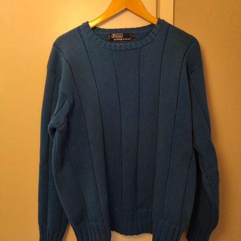 Ralph Lauren Polo sininen miesten neulepaita, koko L vastaa enemmän kokoa M Neuleessa on perinteinen punainen logo rinnassa.