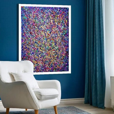 Abstrakteissa teoksissa värit yhdistyvät taiteilijan ajatteluun gestuaalisten ja fluoresoivien sävyjen kautta, luoden ennennäkemättömiä ja taianomaisia visioita, jotka herättävät syvää ilmaisun ja vapauden tunnetta.