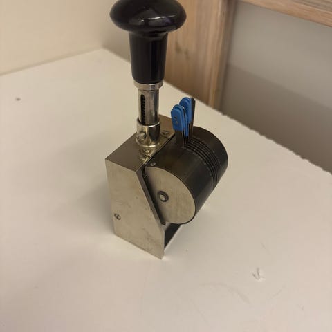 Vanhat leimasin, mustekynä, sinetti vaha, sekä leiman kuivain.