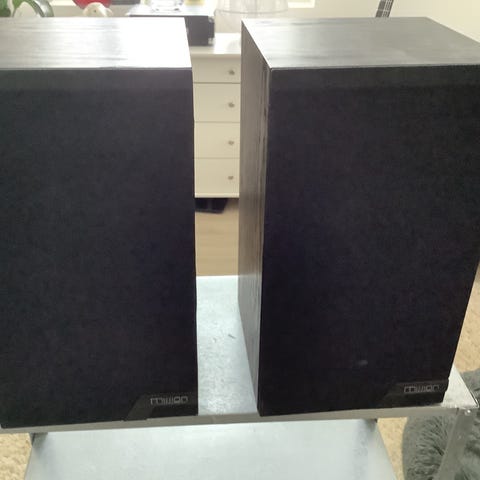 Kuvan mukaiset hyväkuntoiset hyllykaiuttimet.