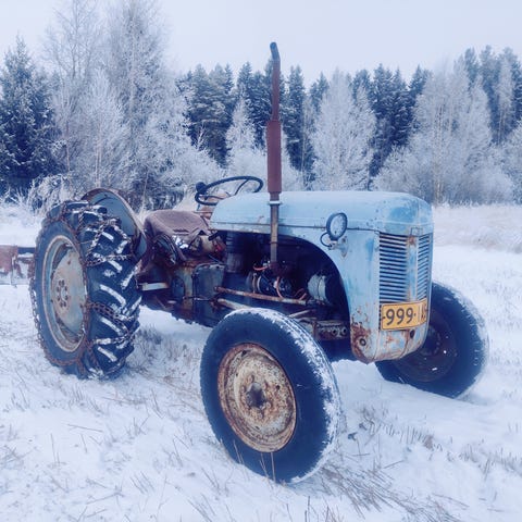 Deutz 4006 traktori, vihreä väri, perälevy jonkin moinen, ketjut. Ei alvia