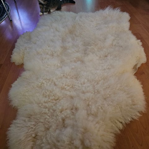 A clean sheepskin rug, never used on the floor. From a non-smoking, pet-free home.