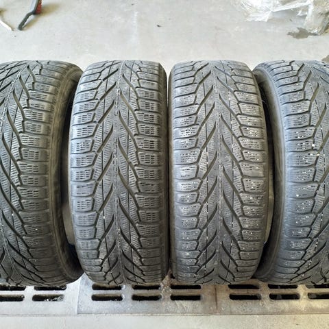 Renkaat hyvä kuntoiset kuin uudet sekä lamellit ja kumi on vielä pehmeä ikäänsä nähden säiltyksen takia.
