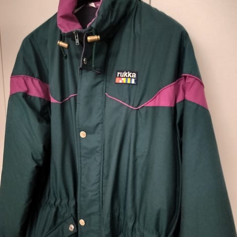 Käyttämätön 80- 90-luvun anorakkimallinen toppatakki. Koko lähinnä S - M (kokolapussa 158 cm). Lepakkohihat, kainalo-kainalo 66 cm, niska-helma 66 cm. Taskuja löytyy. Ohut irrotettava huppu. Hinta ollut 425 mk.